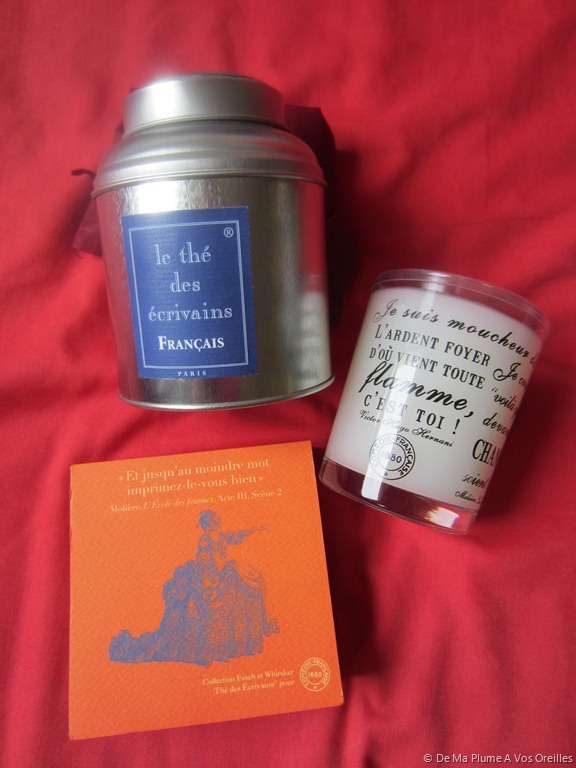 – une boite remplie du Thé des Ecrivains Français, aux fleurs de bleuet ;