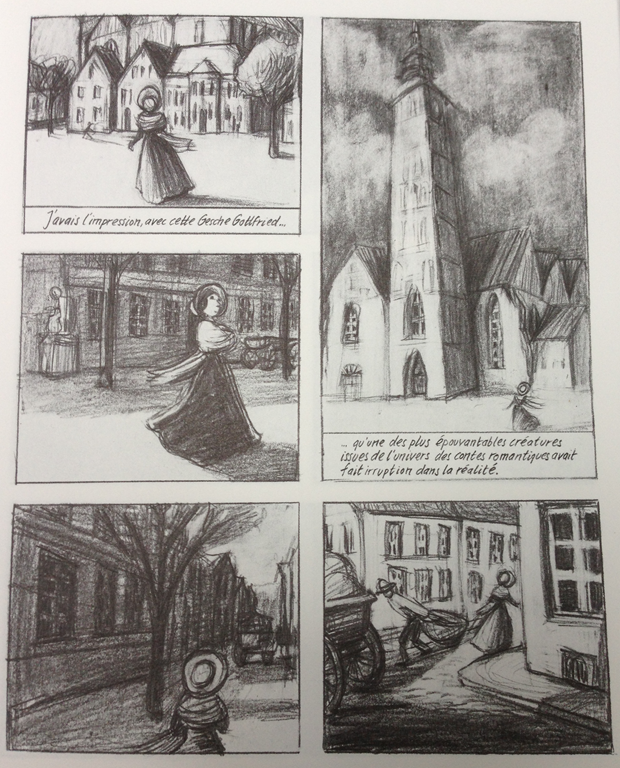 La BD suit donc l’enquête de la narratrice, qui discute avec plusieurs personnages (le pasteur, l’avocat…) et se promène dans Brême pour en savoir plus. Très vite, les habitants la regarde d’un mauvais œil : qui est cette étrangère qui vient fouiner et veut ruiner la réputation de la ville ? Le lieu, rongé par cette histoire d’empoisonnement trop longtemps dissimulée, n’est pas du tout paisible. On le sent dans les ombres et les regards furtifs, les chuchotements et les confidences… Etonnamment, on finit par s’attacher à l’accusée, qui n’a pu s’exprimer que par le meurtre.