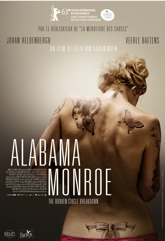 C’est avant tout le bouche-à-oreille qui m’a donné envie de découvrir “Alabama Monroe”, dernier film en date de Felix van Groeningen. En lisant des bons retours de blogueurs/cinéphiles, j’ai eu envie de découvrir ce qui se cachait derrière cette très jolie affiche. Rien à voir avec Marylin Monroe, comme je le pensais au début (*honte*) !