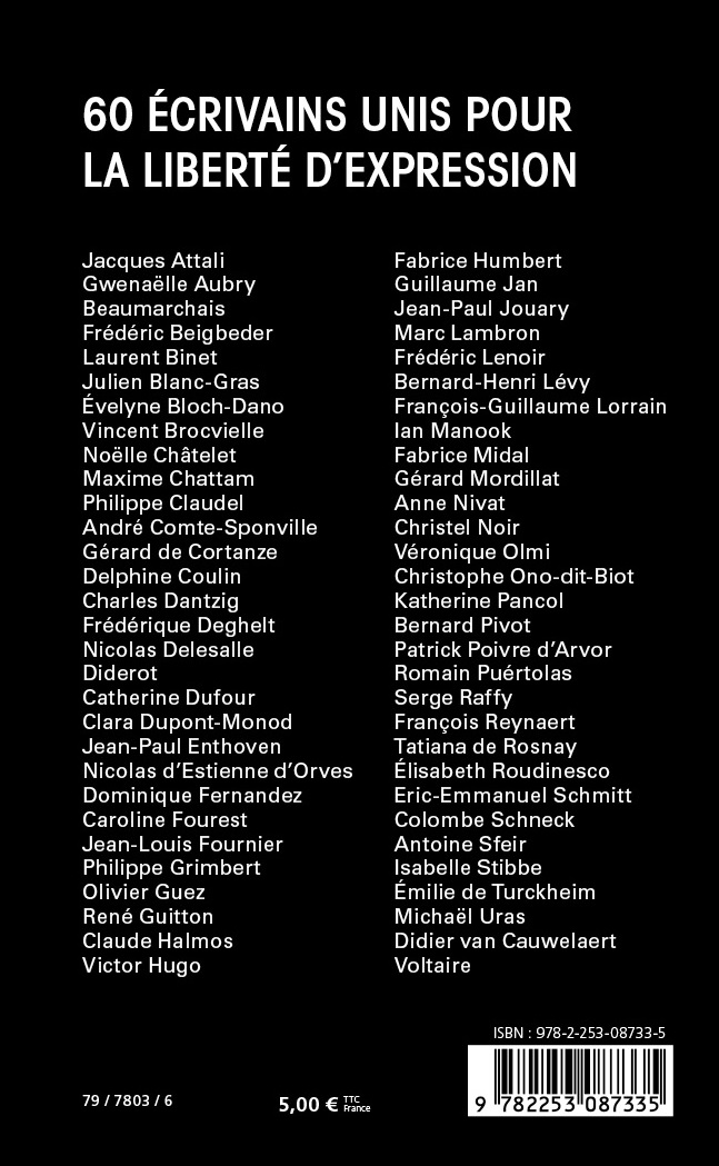 C’est un ensemble de textes écrits par 60 personnalités littéraires, qui abordent la question de la liberté d’expression et partagent leurs émotions et impressions vis-à-vis du terrorisme religieux.